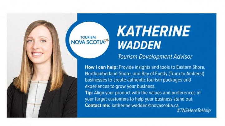 Katherine Wadden, Tourism Development Advisor, is here to help businesses and organizations create compelling tourism packages and experiences to motivate travel to and within Nova Scotia.